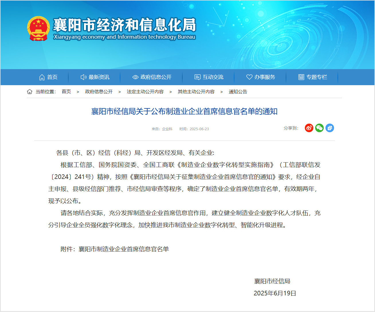 近日,襄陽市經信局發(fā)布《襄陽市經信局關于公布制造業(yè)企業(yè)首席信息官···