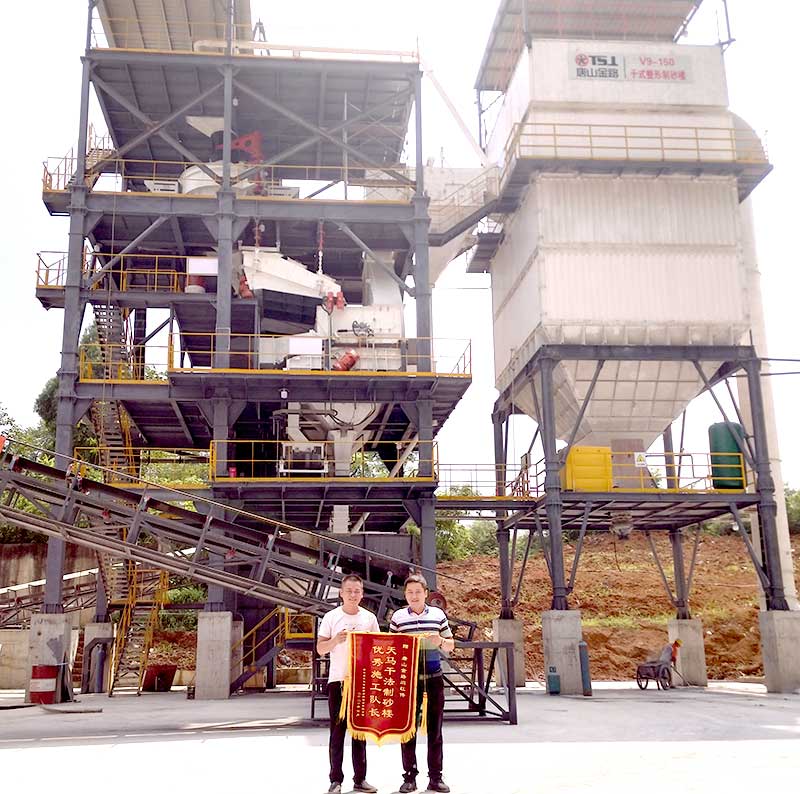 天馬建筑是一家現(xiàn)代化綠色環(huán)保型生產(chǎn)企業(yè),該公司專業(yè)生產(chǎn)商品混凝土。高度重視產(chǎn)品的質(zhì)量,以“質(zhì)量第一,服務(wù)至上”為企業(yè)宗旨,現(xiàn)需擴(kuò)建一條時產(chǎn)150噸機(jī)制砂生產(chǎn)線。經(jīng)過多方考察、對比,最終選定了唐山金路的制砂生產(chǎn)線。唐山金路根據(jù)天馬建筑制砂原料和用砂需求,為天馬建筑量身定制的這套時產(chǎn)150噸的V9干法制砂生產(chǎn)線。項目投產(chǎn)近一個月以來,得到天馬建筑的高度認(rèn)可與好評,在項目實施階段,對我公司安裝人員的技術(shù),給予肯定與認(rèn)可,特送錦旗表示感謝。這錦旗不僅僅是榮譽的象征,更代表“天馬建筑”對于唐山金路全體工作人員的認(rèn)可,客戶的滿意就是我們前進(jìn)的動力。